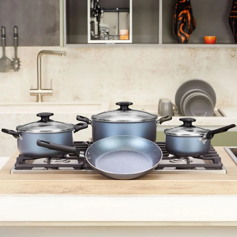 Set de ollas y sartenes con antiadherente.