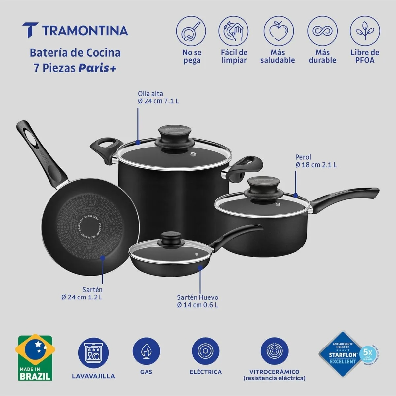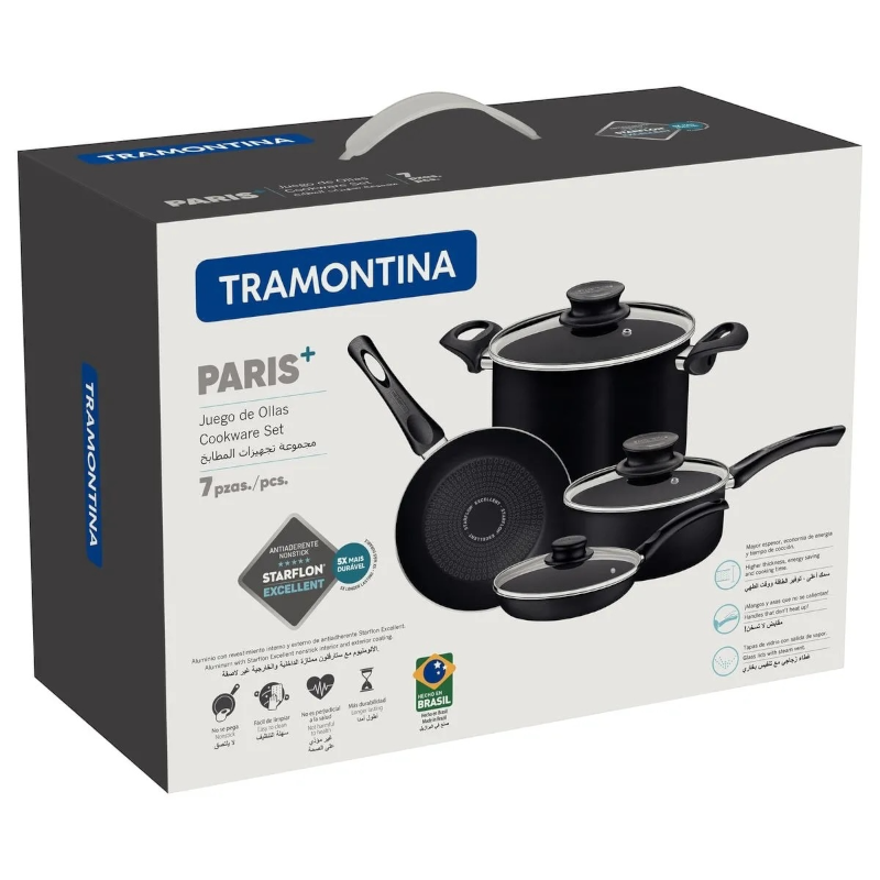 Bateria Tramontina Paris+ en Aluminio con Antiadherente Negro 7 Piezas