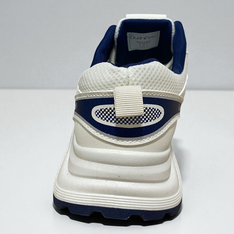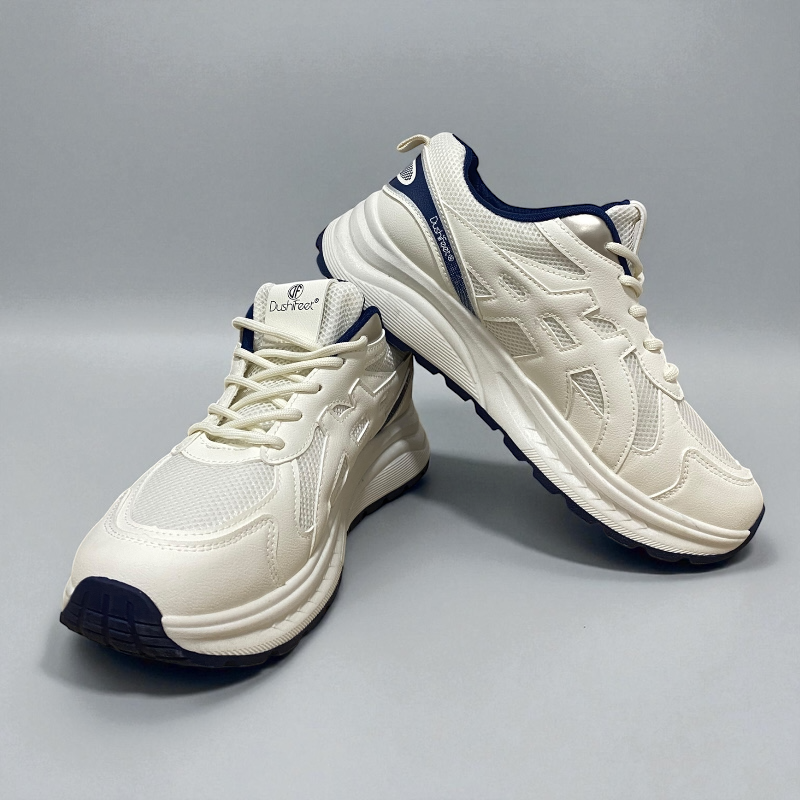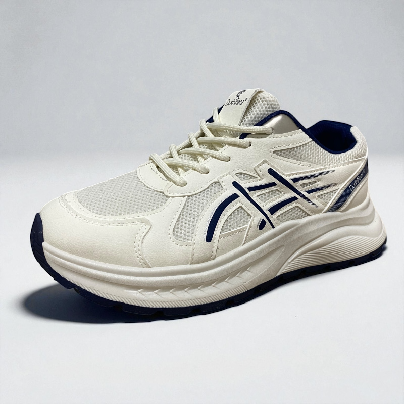 Experimenta el equilibrio perfecto entre estilo y confort con estos zapatos deportivos en tono claro, realzados con líneas de azul oscuro y una suela del mismo color. Fabricados con materiales de excelente calidad, su diseño ligero y ergonómico te ofrece comodidad durante todo el día, sin sacrificar la estética moderna que los distingue.