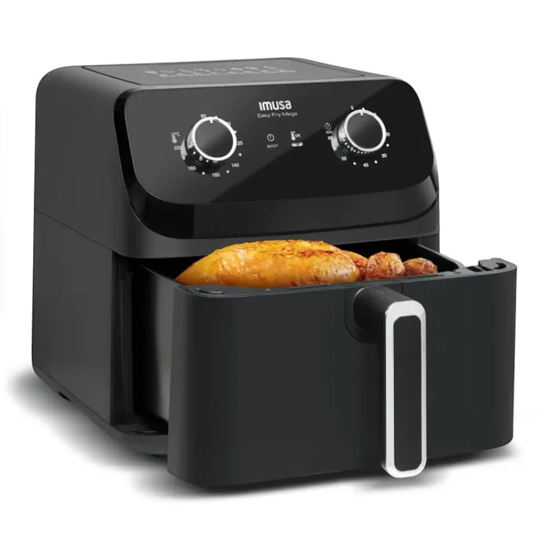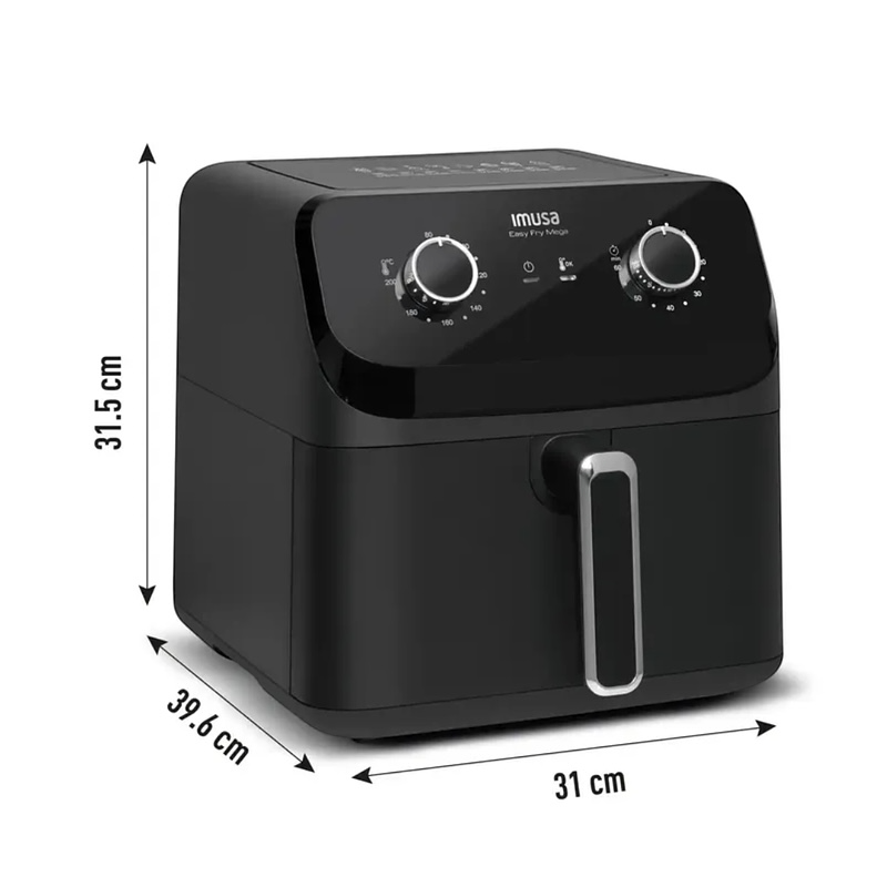 Disfruta de tus comidas favoritas con menos aceite y más sabor con la Freidora de Aire Digital Imusa. Diseñada para ofrecer una cocción rápida y uniforme, permite preparar papas, pollo, carnes, snacks y mucho más con un acabado crujiente por fuera y jugoso por dentro. Su diseño moderno y elegante en color negro con detalles en tono dorado la convierte en el complemento perfecto para cualquier cocina. Cuenta con canasta de gran capacidad, ideal para preparar porciones familiares, y un panel digital frontal de fácil uso que te permite controlar el tiempo y la temperatura con precisión.