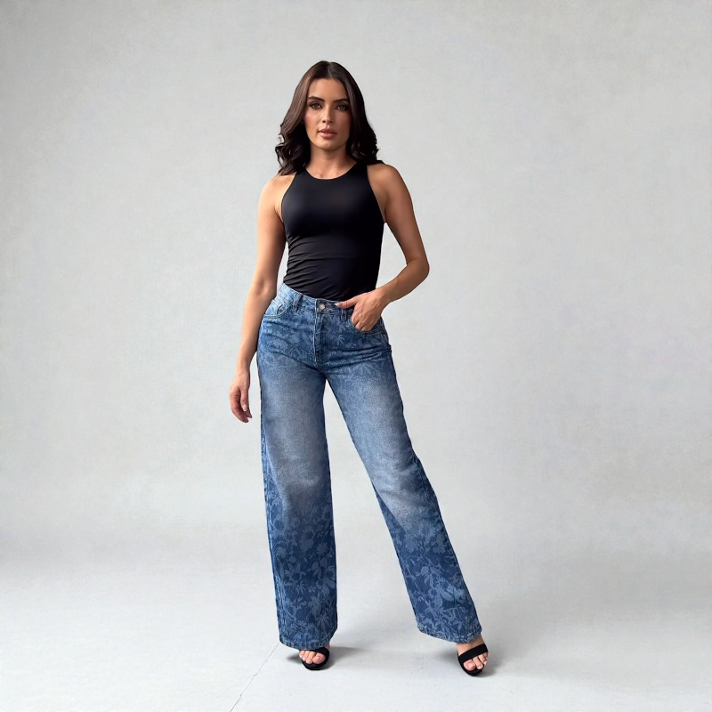 Sé el primero en valorar “Jean Wide Leg Con Estampado Floral”