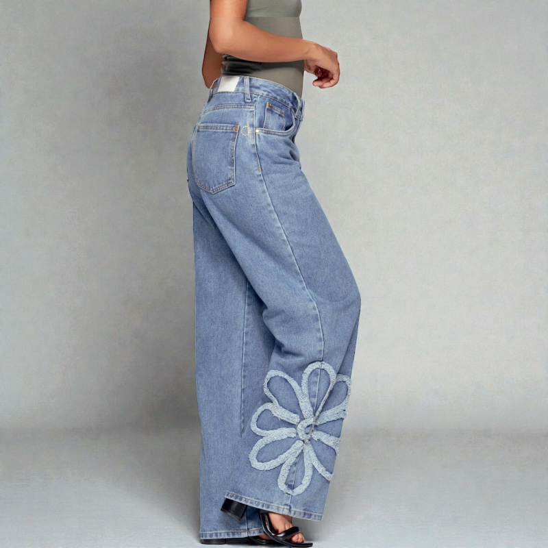 Dale un toque moderno y femenino a tus outfits con este Jean Wide Leg con Flores Bordadas de Piel de Angel, es una prenda que destaca por su diseño único y lleno de estilo. Su silueta amplia aporta comodidad y movimiento, mientras que los bordados en forma de flores hacen que el jean sea una pieza llamativa y totalmente diferente.