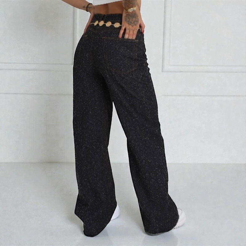 Jean Wide Leg Negro Jaspeado