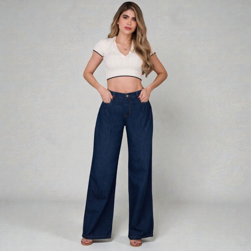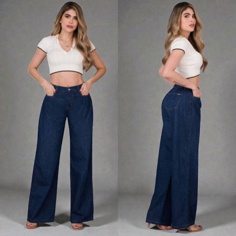 Combina estilo contemporáneo con la elegancia de un denim clásico. Su diseño ancho y recto, acompañado de un tiro medio cómodo, ofrece una silueta moderna que aporta libertad de movimiento sin perder estructura ni estilo.