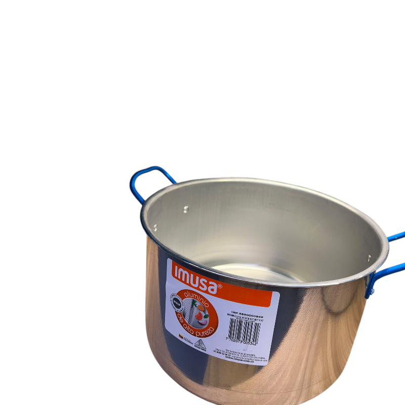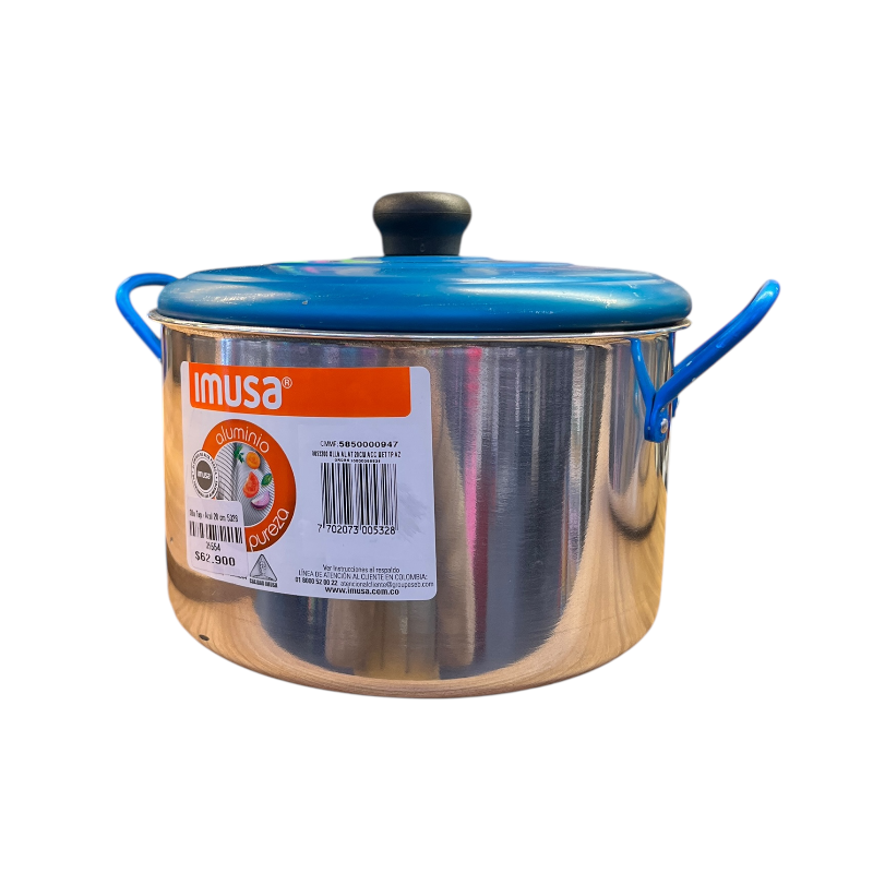 La olla imusa 20 cm 3.5 litros tapa azul aluminio, está elaborado con aluminio sano. El aluminio eleva su temperatura en pocos segundos y de igual manera, se enfría rápidamente cuando se retira del fuego.