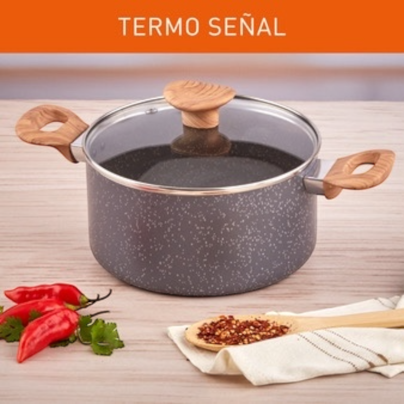 Olla IMUSA Natural Stone 24cm Antiadherente Tapa de Vidrio