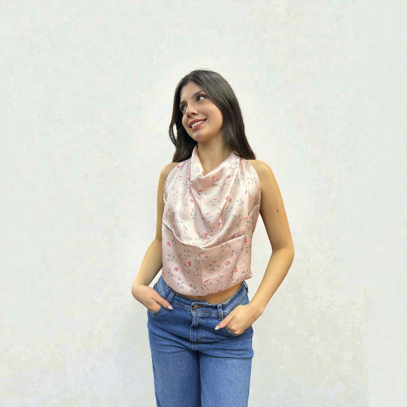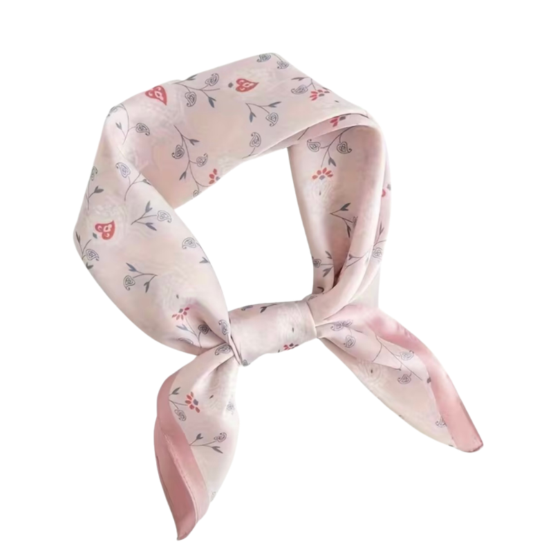 Está elaborada en tela suave tipo satín, liviana y fresca, ideal para usarla todos los días. Gracias a su tamaño, puedes llevarla en el cuello, como bandana, en la cabeza o amarrada al bolso para darle un toque sutil y elegante a cualquier outfit.