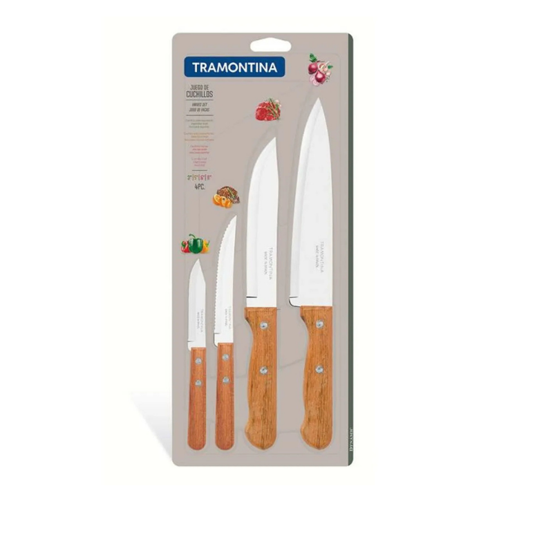Set de Cuchillos Tramontina 4 Piezas con Mango de Madera