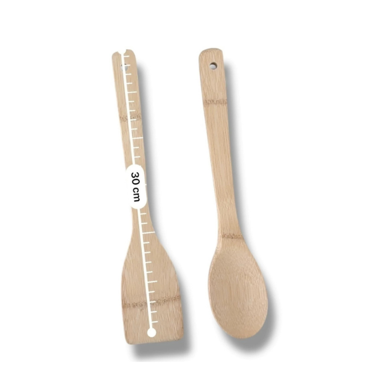 Agrega practicidad y estilo natural a tu cocina con este set de utensilios en bambú de 2 piezas 🌿. Son ideales para preparar tus recetas diarias, mezclar ingredientes o servir alimentos de manera cómoda, un material resistente, liviano y perfecto para usar en ollas y sartenes sin dañarlas. Su diseño sencillo y funcional los convierte en un complemento útil para cualquier hogar. Este set es perfecto para quienes buscan utensilios duraderos, fáciles de usar y amigables con sus utensilios de cocina.