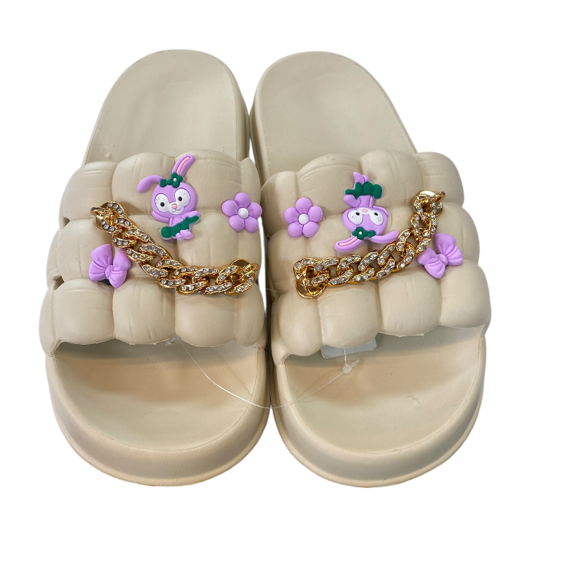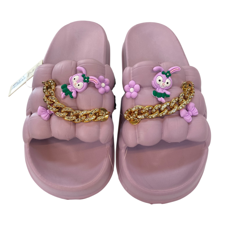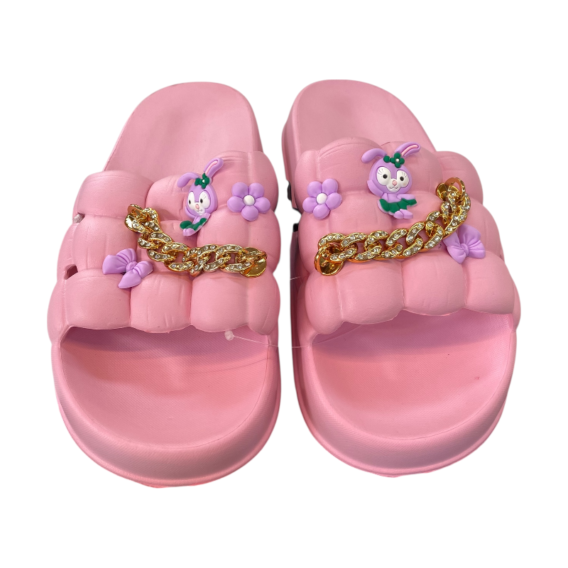 SweetSteps Girls trae las chanclas más lindas para niñas, con detalles encantadores de muñequitos, flores y una delicada cadena dorada.