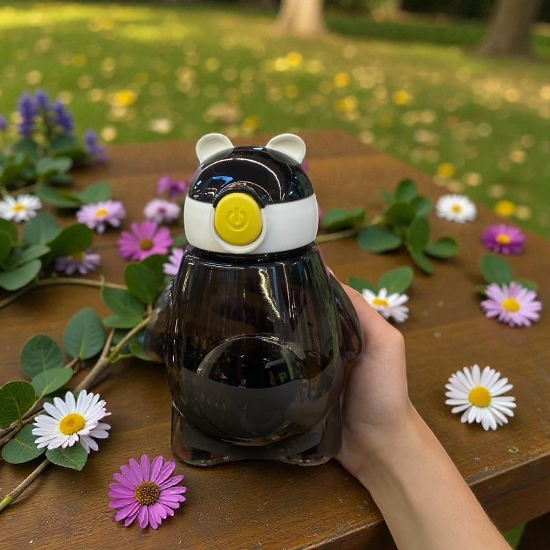 Es el compañero ideal para los más pequeños gracias a su encantador diseño en forma de oso y sus colores vibrantes que llaman la atención al instante. Su tapa con botón de apertura fácil permite que los niños beban sin esfuerzo, mientras que la correa ajustable les ayuda a llevarlo cómodamente a la escuela, paseos o actividades al aire libre. Fabricado con materiales ligeros y resistentes, este termo combina diversión y practicidad para mantener a los niños hidratados durante todo el día. Disponible en varios colores para que cada niño elija su favorito.