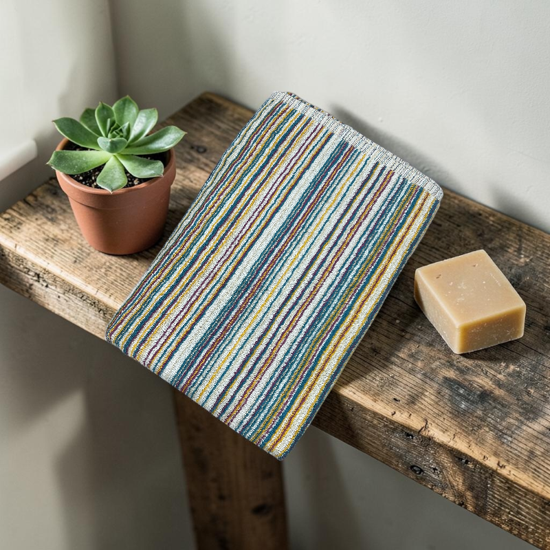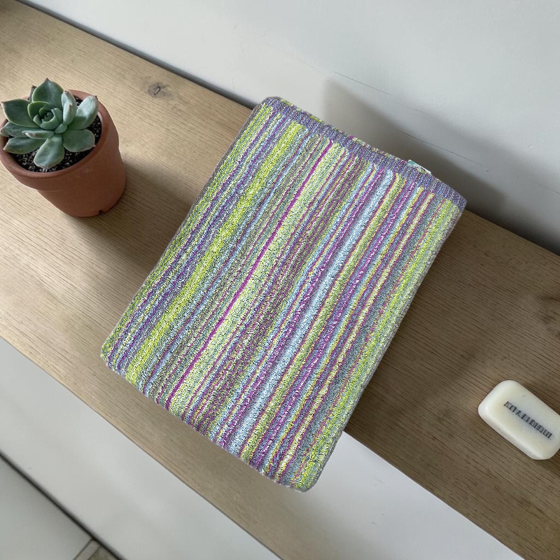 Elaborada en 100% algodón, ofrece una textura extra suave y una alta capacidad de absorción, ideal para el uso diario. Su tamaño de 70 x 140 cm brinda comodidad y practicidad, mientras que su gramaje de 450 la hace más gruesa, resistente y duradera, proporcionando una sensación más envolvente y de mayor calidad. Sus combinaciones de colores vibrantes y elegantes permiten que cada toalla sea única, aportando un toque decorativo especial a tu espacio.