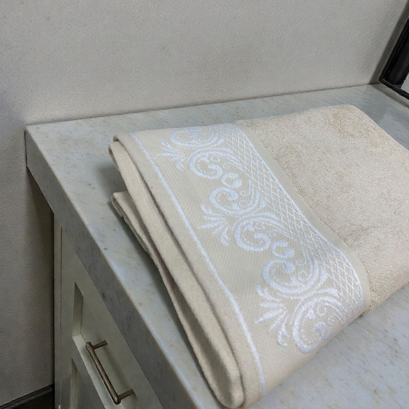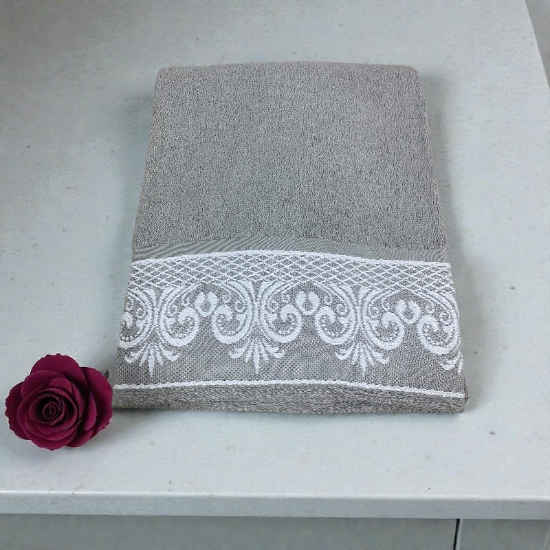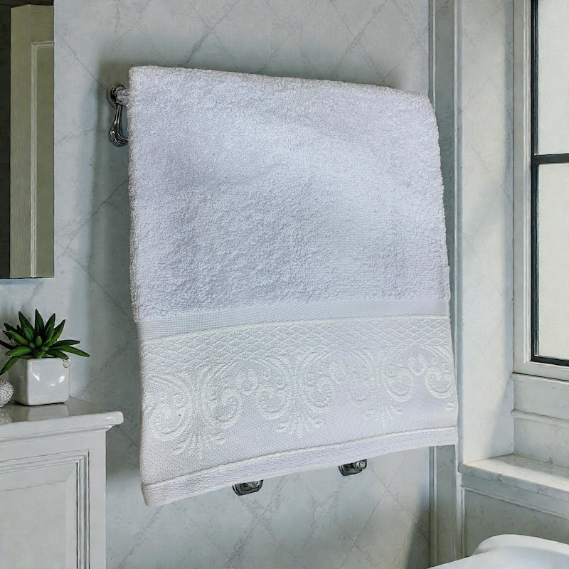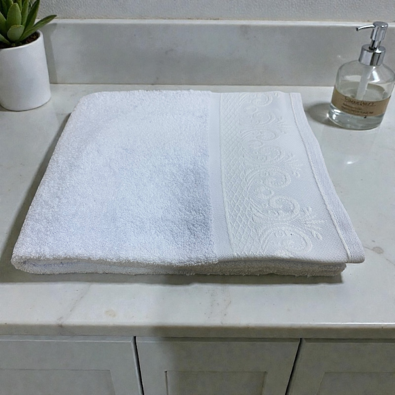 Toalla de alta calidad, suave al tacto y con excelente absorción. Su diseño elegante con franja decorativa le da un toque sofisticado a tu baño. Ideal para uso diario, duradera y cómoda, perfecta para quienes buscan funcionalidad sin perder estilo.