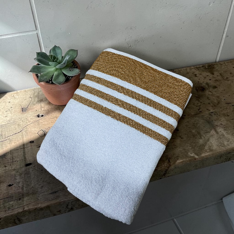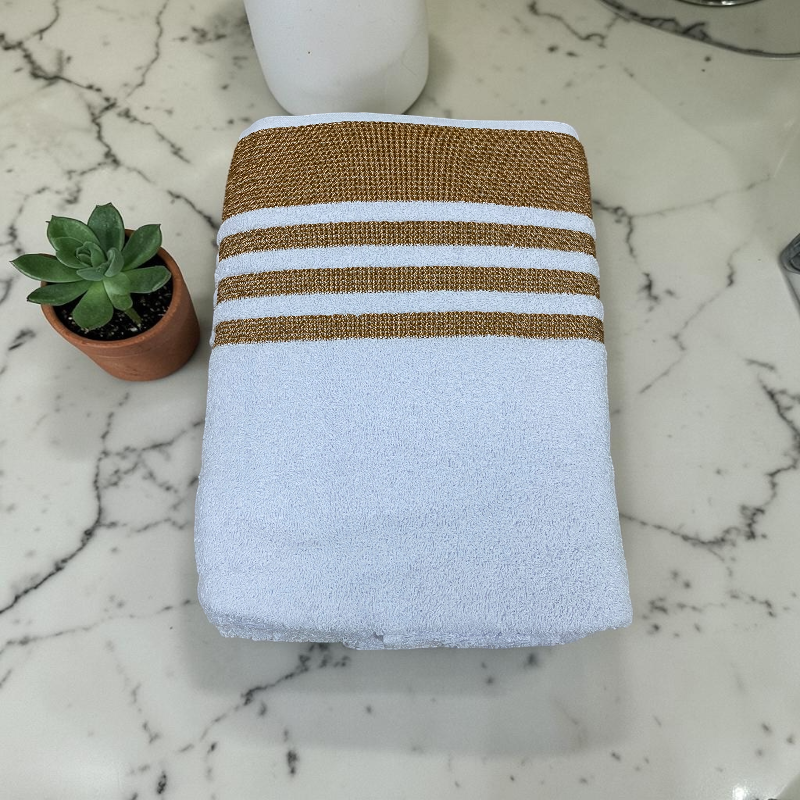 Disfruta de una experiencia de suavidad y confort con esta toalla, ofrece el equilibrio perfecto entre practicidad y comodidad. Su textura suave y su excelente capacidad de absorción la convierten en una opción funcional para el baño, gimnasio o viajes. Cuenta con un diseño moderno con franjas decorativas que aportan un toque elegante y versátil a cualquier espacio.