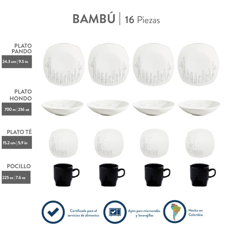 Vajilla Corona Bambú 4 Puestos 16 Piezas