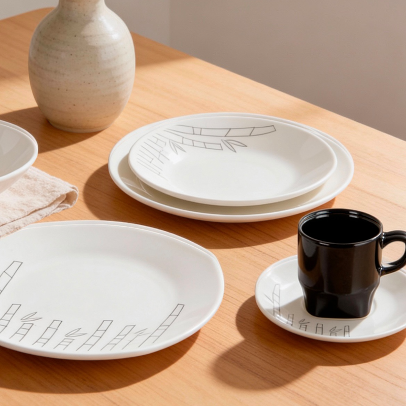 Equilibra tus momentos en la mesa con el diseño de Bambú. Su estilo fresco y natural, con detalles grises y formas semi cuadradas, evoca paz y armonía en cada comida. Ideal para 4 puestos, combina estilo contemporáneo y funcionalidad para tu hogar.
