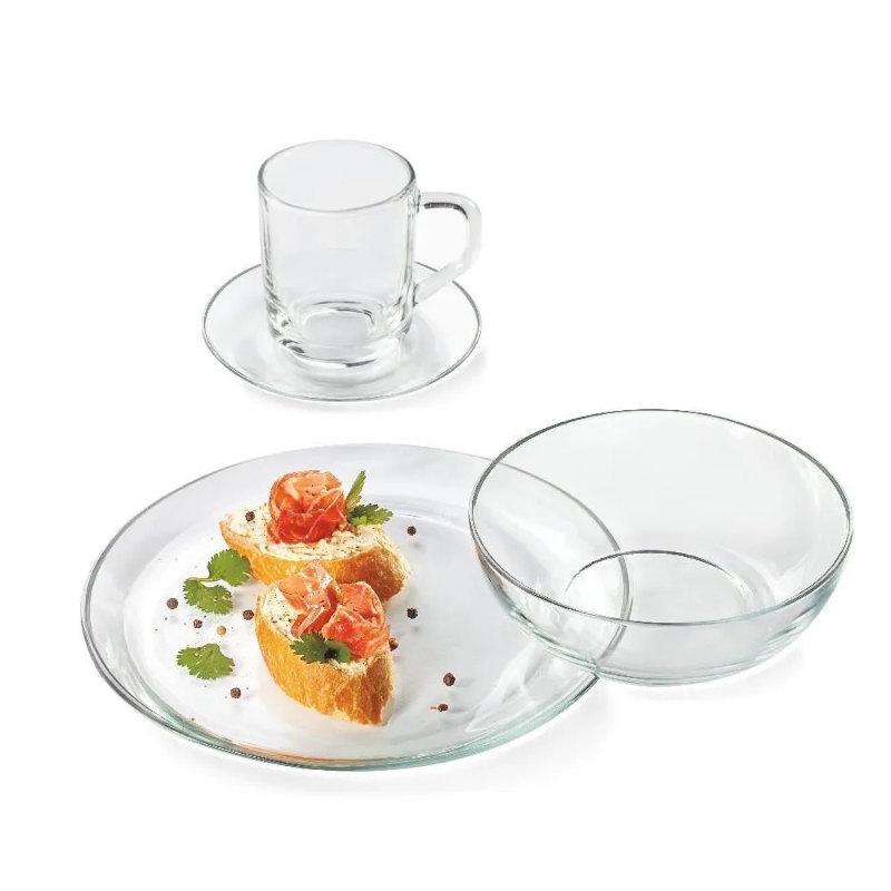 Esta vajilla está elaborada en vidrio resistente de alta calidad, lo que garantiza mayor durabilidad y un acabado brillante que realza la presentación de tus alimentos. Su diseño estilizado y versátil combina fácilmente con cualquier tipo de decoración, desde lo clásico hasta lo moderno.