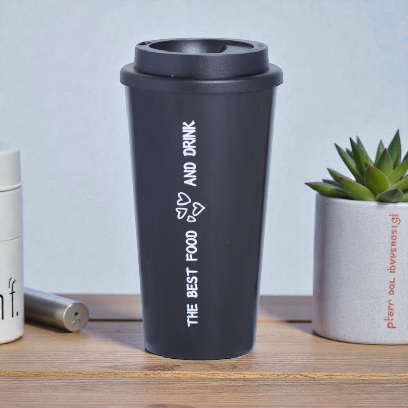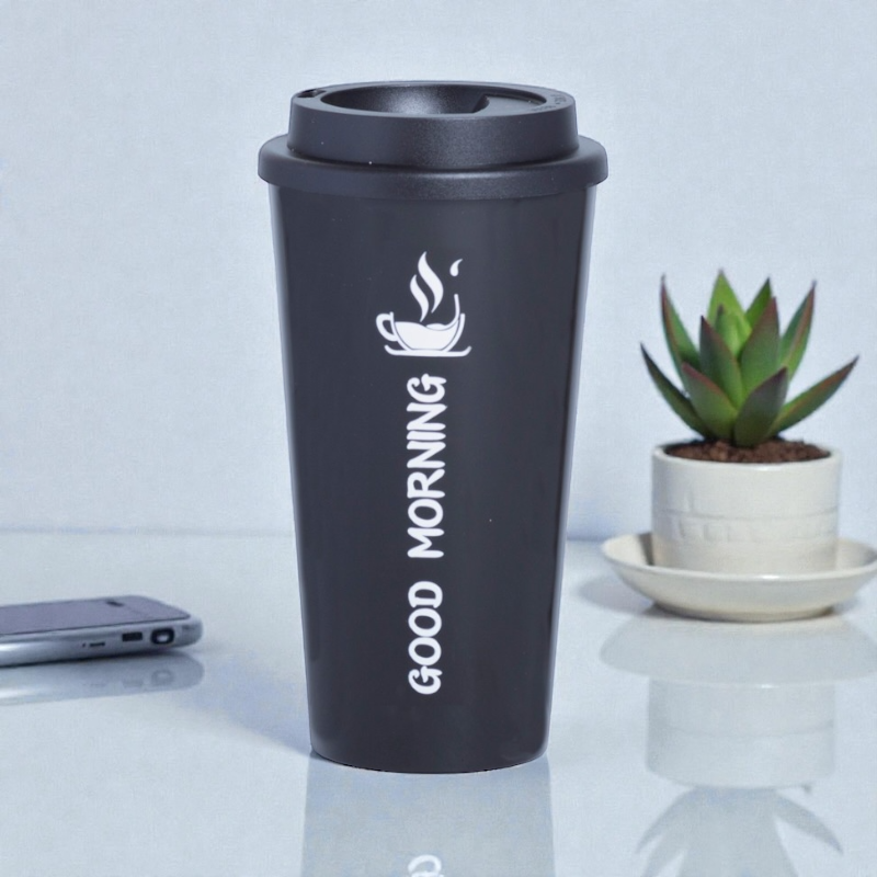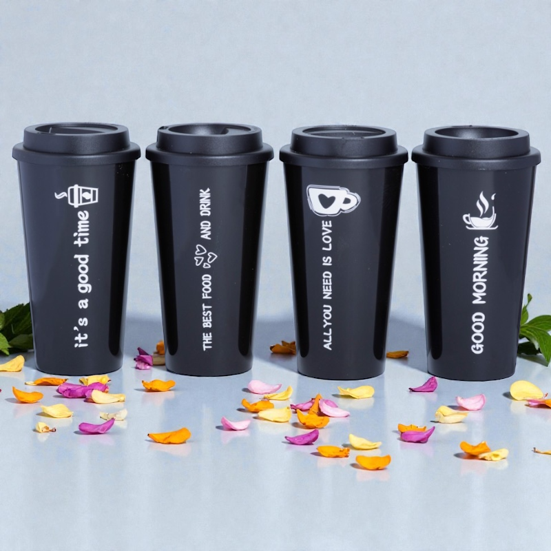 El Vaso Tipo Cafetero Premium es perfecto para quienes aman disfrutar su bebida favorita con estilo. Su diseño elegante en color negro combina con todo, y cada vaso incluye una frase inspiradora diferente, ideal para regalar o para llevar al trabajo, la universidad o tus actividades diarias.
