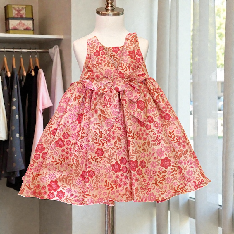 Es un vestido delicado y lleno de encanto, ideal para ocasiones especiales. Su hermoso estampado floral en tonos rosados aporta frescura y dulzura, mientras que su diseño de falda amplia ofrece una caída elegante y muy cómoda. Perfecto para celebraciones, fotos y días donde quieras que tu niña luzca radiante y con un estilo encantador.